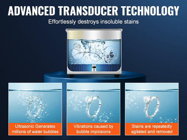 Utilizing advanced transducer technology, the sonic cleaner generates 40kHz ultrasonic waves that create millions of tiny bubbles, effectively reaching surfaces and crevices to thoroughly clean dirt without damaging the appearance or quality of items.