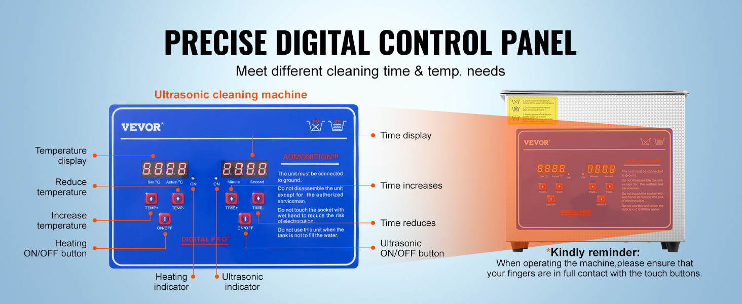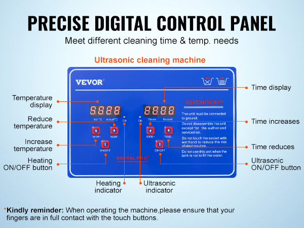 • Digital Control Panel: The digital control panel offers convenient operation, allowing precise control over cleaning time and temperature. Multiple modes cater to different item-specific needs, making the cleaning process hassle-free and enhancing your cleaning efficiency.
