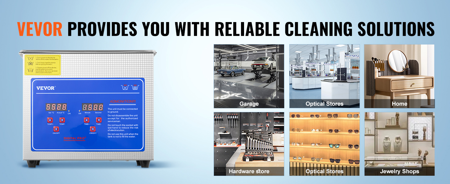 • Versatile Applications: The VEVOR ultrasonic cleaner machine holds multiple certifications, ensuring reliability and making it suitable for a wide range of applications. From laboratories and carburetors to circuit boards, dental equipment, jewelry, eyeglasses, watches, and cutlery. Trust our product to provide professional-grade cleaning.
