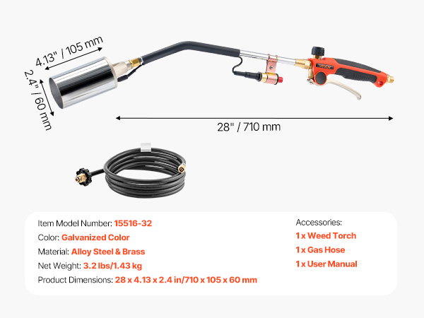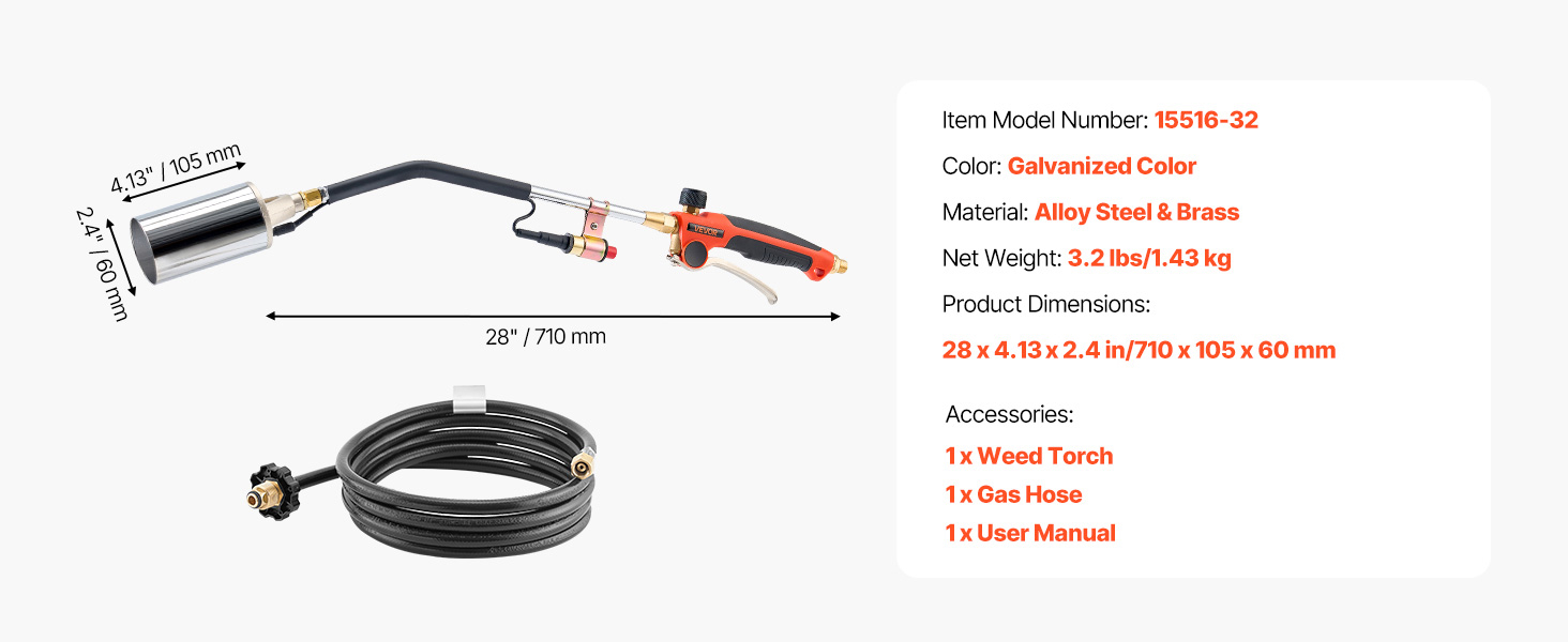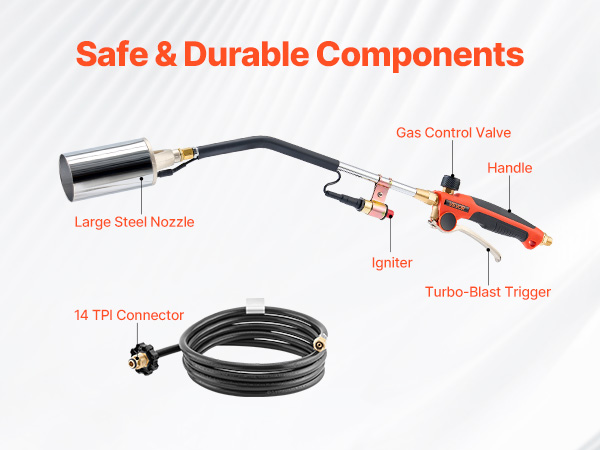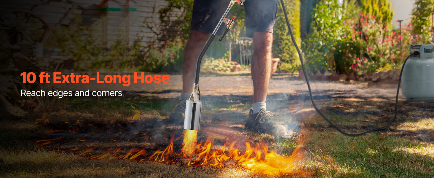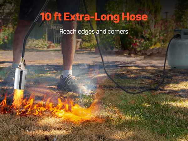 - User-Friendly Design: Equipped with a 10 ft extended hose, this propane blow torch easily reaches from garden corners to farm edges without dragging a tank behind you. Hook it up to your propane tank and you're good to go—no complicated setup