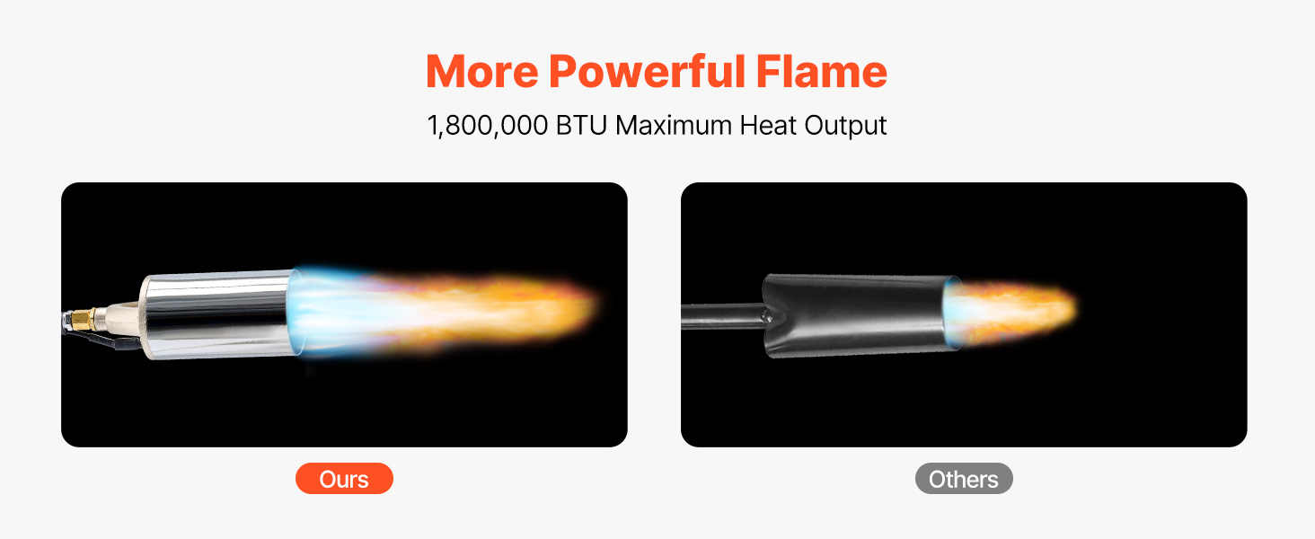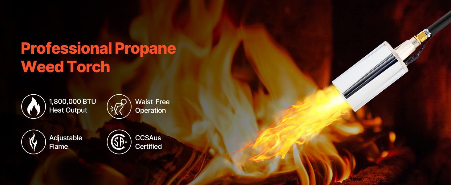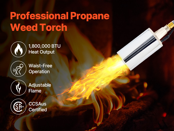 - Efficient Weed Control: Fire up 1,800,000 BTU of weed-blasting heat! This propane torch weed burner burns hot enough to instantly dry out and char weeds on contact. One sweep clears more ground—less back and forth, more done in less time