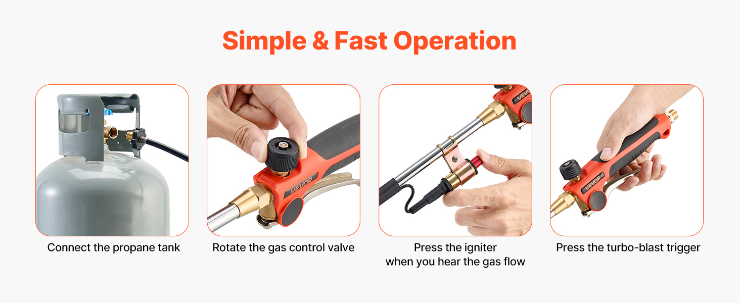 No special skills required. Just connect it to a propane tank and you’re ready to go. The simple setup and controls make this propane torch kit beginner-friendly, yet powerful enough for serious tasks.