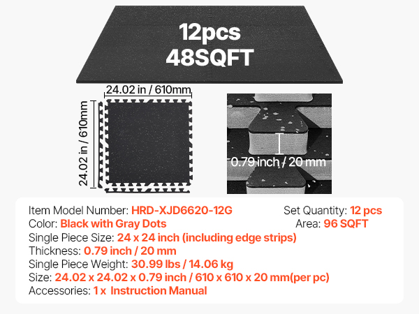 | Single Piece Size | 24 x 24 inch (including edge strips) |