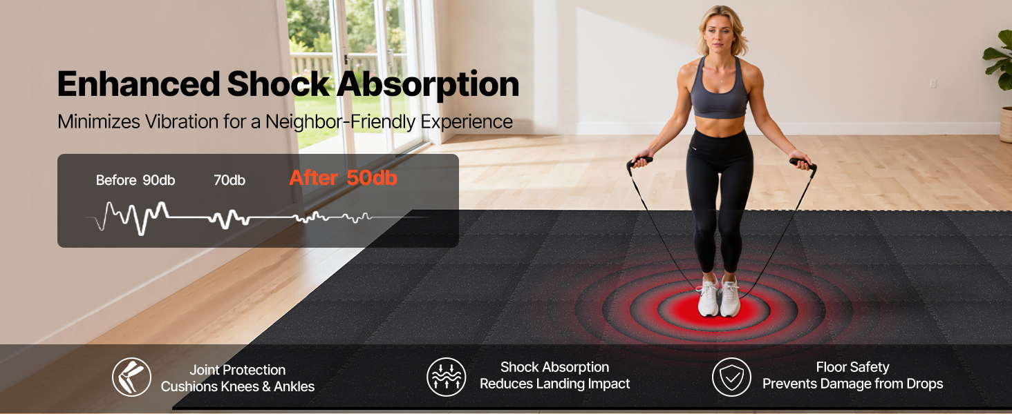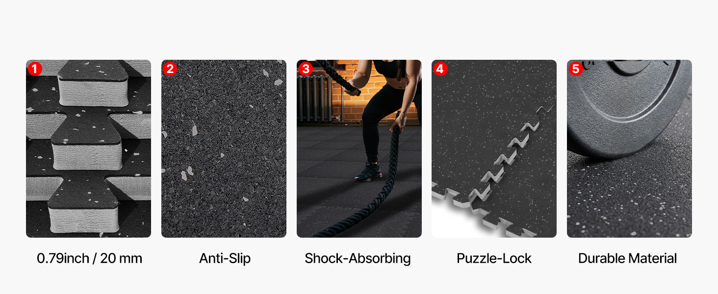 - Professional Floor Protection: Our high-density puzzle exercise mat absorbs impact, prevents dents, and protects floors from heavy equipment without deformation