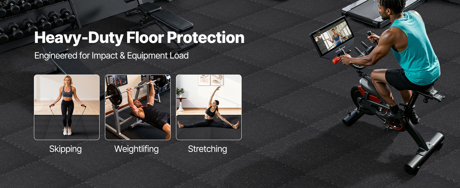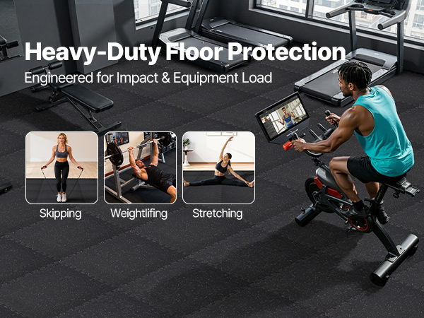 - Durable & Wear-Resistant: Made of rubber material that is wear-resistant and tear-resistant. Even when placing equipment with long-term friction such as power racks and spinning bikes, our rubber floor mats won’t easily wear out or crack