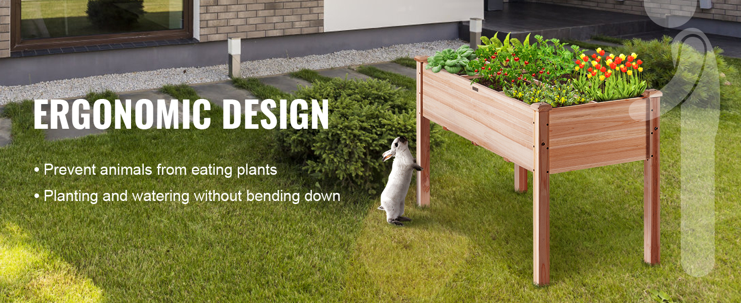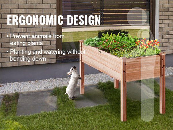 - Ergonomic Design: Our garden box measures 47.2 x 22.8 x 30 inches, giving your plants sufficient space to grow and flourish. Thanks to the 30" total height, you will not bend over when planting, and it can also protect your plants from being eaten by rabbits or other small animals. Keep your garden safe without hurting your back! We are right behind you.