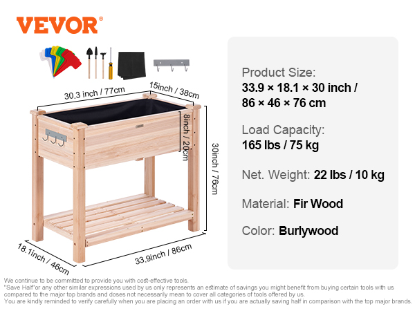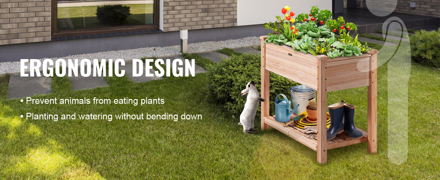 - Ergonomic Design: Our garden box measures 33.9 x 18.1 x 30 inches, giving your plants sufficient space to grow and flourish. Thanks to the 30" total height, you will not bend over when planting, and it can also protect your plants from being eaten by rabbits or other small animals. Keep your garden safe without hurting your back! We are right behind you.