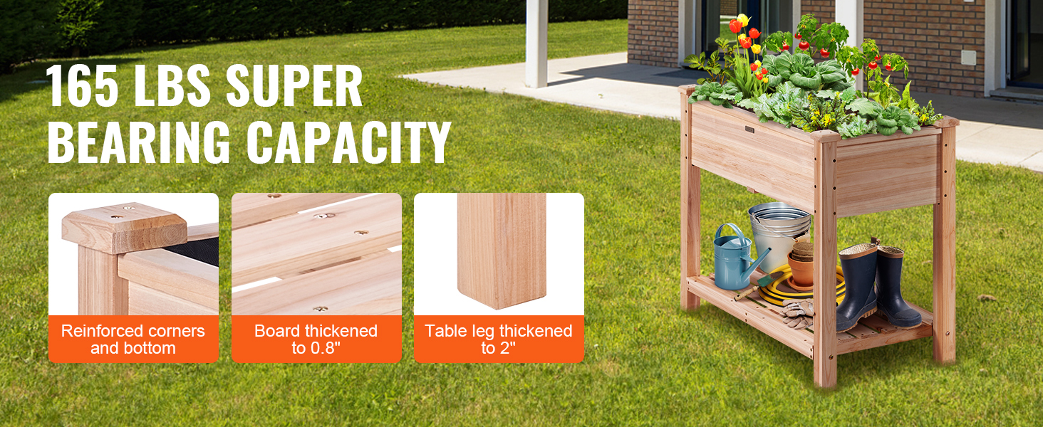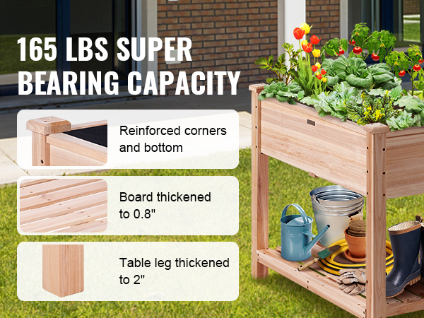 - Wood You Believe It: Are you tired of poorly put together equipment? Well, we have made sure to put time and effort into ours! The raised planter box is made of 100% fir wood, and it can hold up to 165 lbs/75 kg. Every corner is reinforced to ensure long-lasting outdoor use, not easy to break.