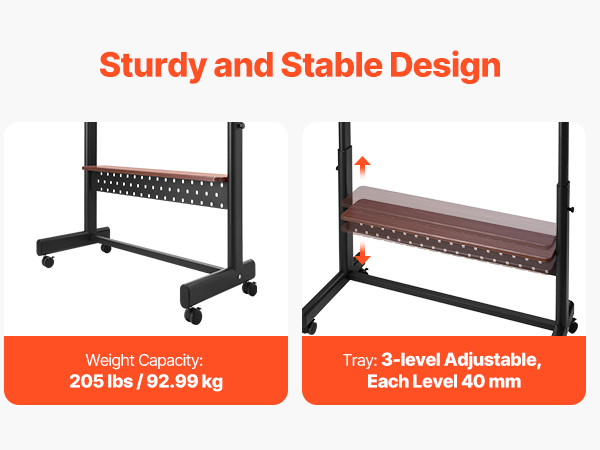 Our moving TV stand is designed for stability and supports up to 205 lbs, ensuring your TV remains steady and wobble-free during viewing for a relaxed experience.