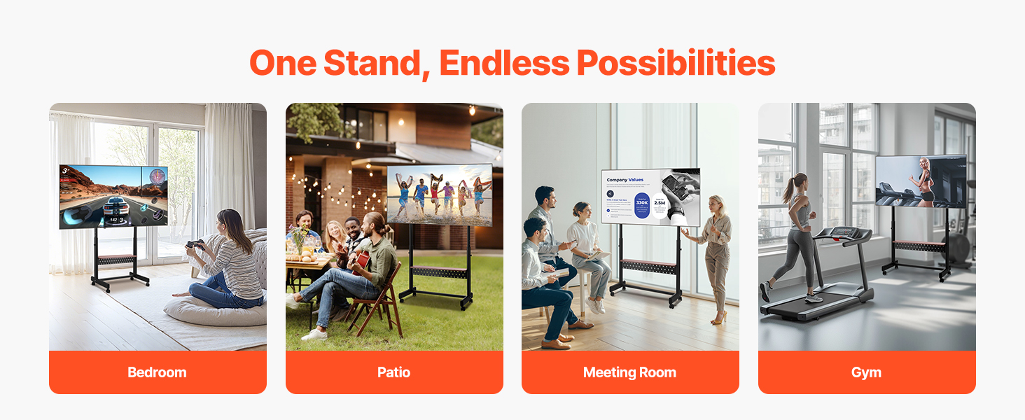 Our mobile TV mount is equipped with swivel wheels, allowing you to move the TV quickly from one room to another.