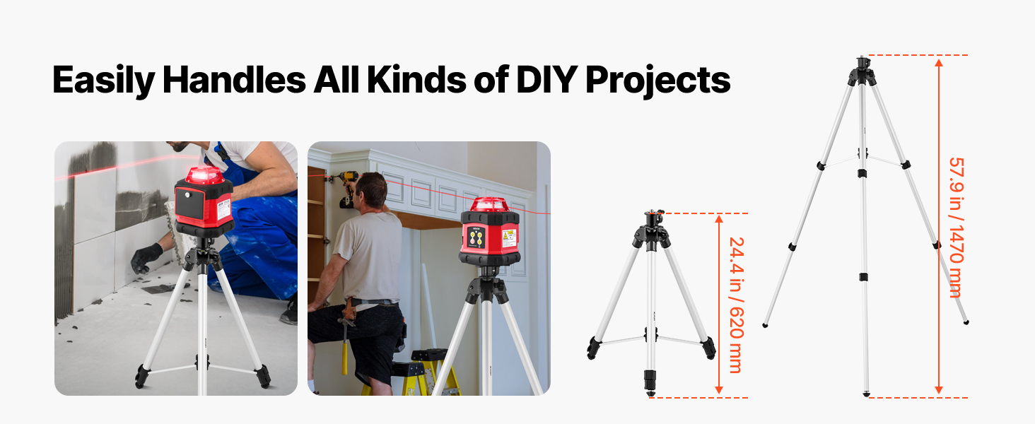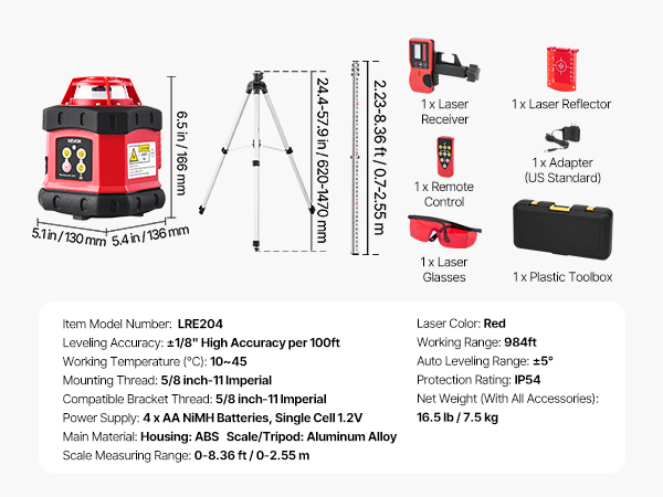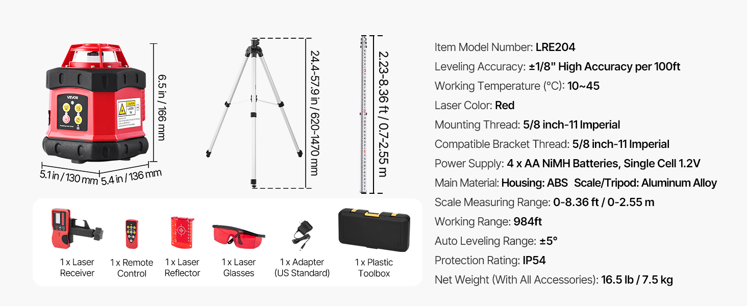 - 984 ft Working Distance: The laser level reaches up to 984 ft with the receiver, ideal for large remodels and small jobsites. Includes receiver, grade rod, tripod, and laser glasses to enhance visibility in bright conditions