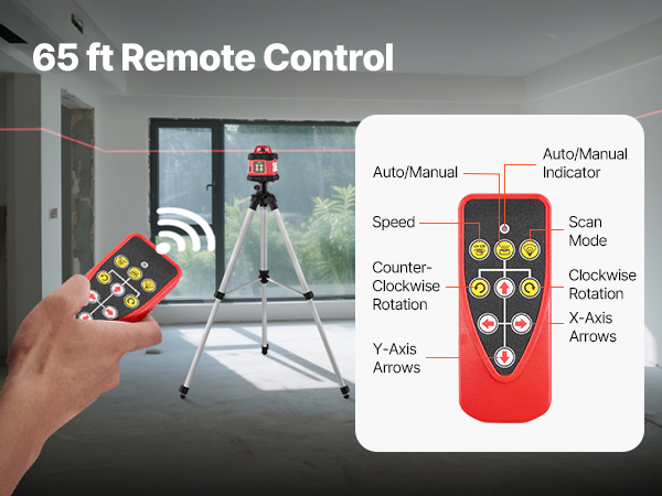 - Effortless to Use: Intuitive interface plus remote control (up to 65 ft) for quick setup. 5/8 inch mounting thread fits most tripods and accessories used with rotary lasers