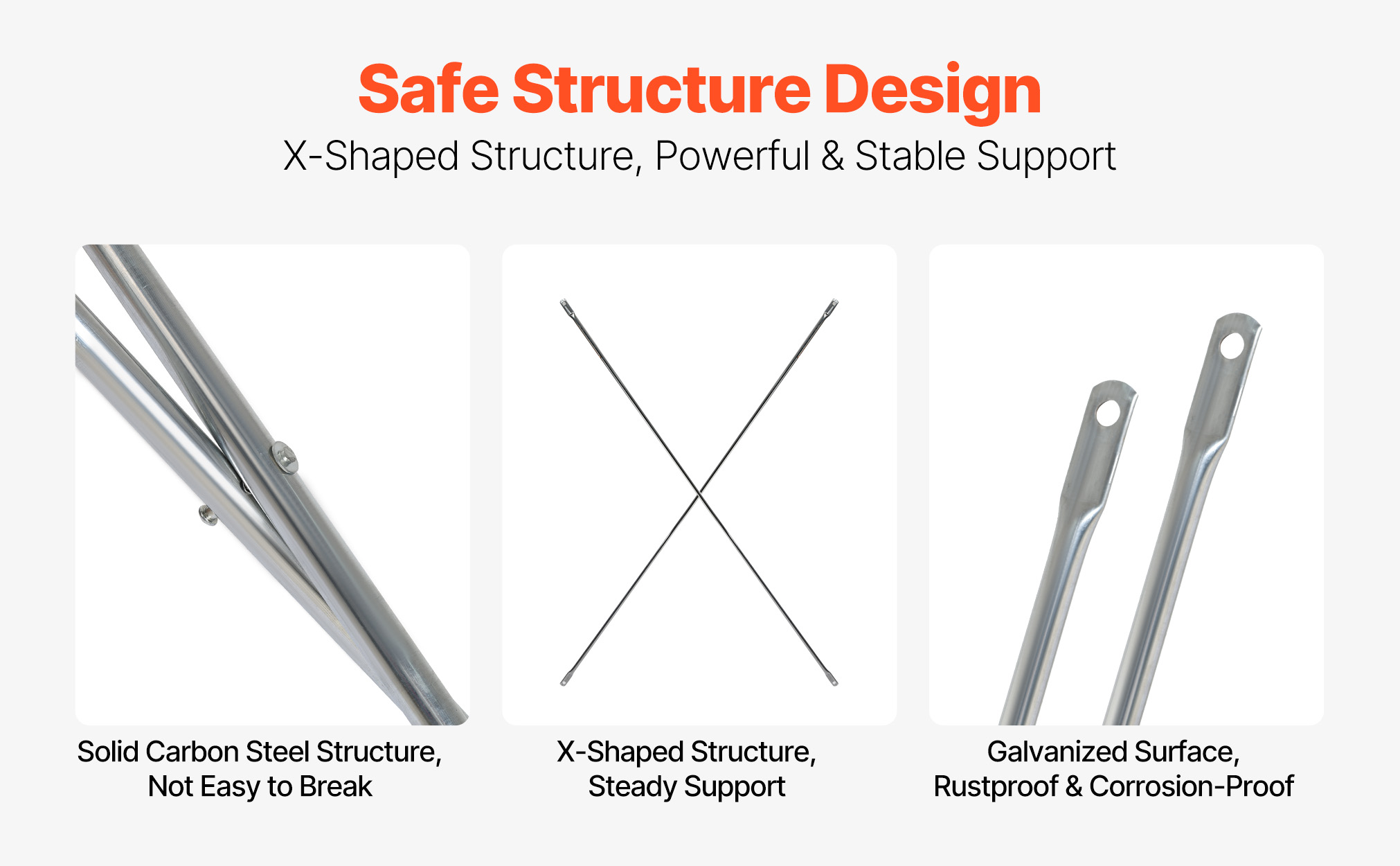 Our X-shaped cross brace set (8 Pack) installs without tools—just hang them on your scaffolding, then remove them easily after use. The solid threaded rod resists breakage for added stability, and the anti-rust coating ensures corrosion resistance in various environments for lasting use.