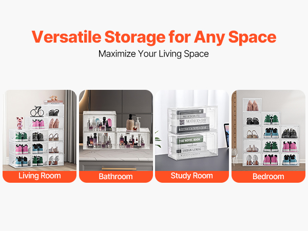 - Quick, Tool-Free Assembly: No complicated setup – just 5 easy steps to assemble. The plastic shoe organizer fits up to US Size 13 shoes. The transparent body and front door make it simple to spot your shoes, keeping your space neat and organized.