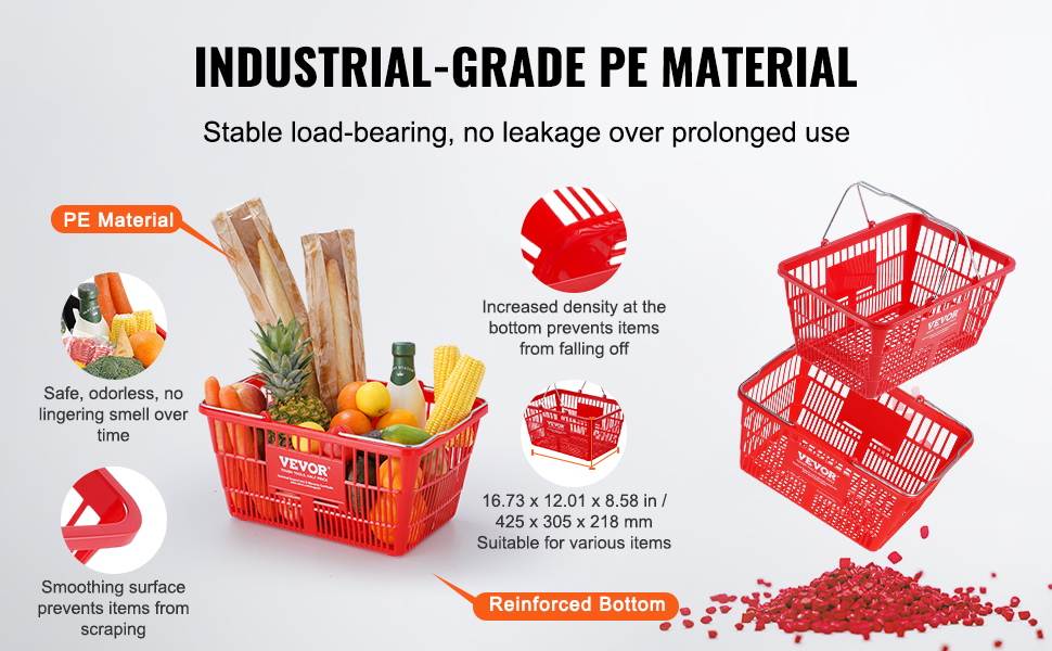 • Premium PE Material: Crafted from industrial-grade PE, this store basket is tough and durable. Free from funky odors, it features a smooth surface to protect your items and a reinforced bottom for added security, supporting up to 20 pounds without failure.