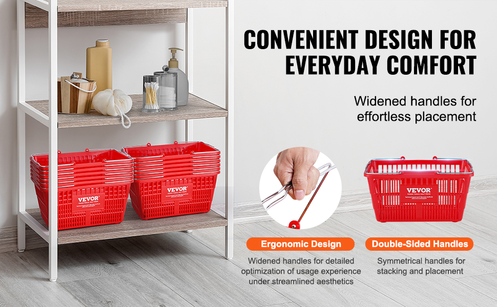 With VEVOR’s hand-held shopping basket, say goodbye to shopping struggles! Designed for your needs, it’s roomy enough to handle a week’s worth of groceries for the whole family. No more juggling bags or worrying about space—it’s all sorted with our basket!