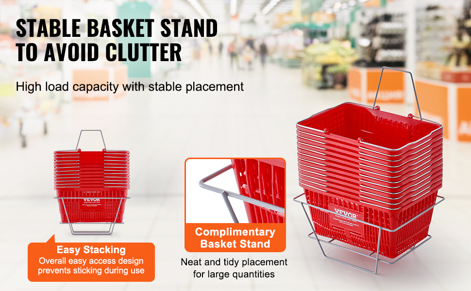 • High Load-Bearing Basket Stand: Keep your shopping organized with our basket stand! Easily store multiple plastic shopping baskets and keep your space clutter-free. Ideal for supermarkets or at home, it's a must-have for a convenient shopping experience. Place it throughout the store to attract customers' attention and encourage quick purchases.