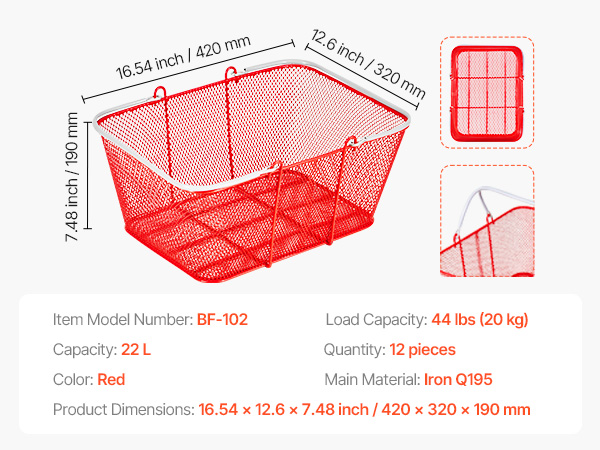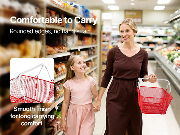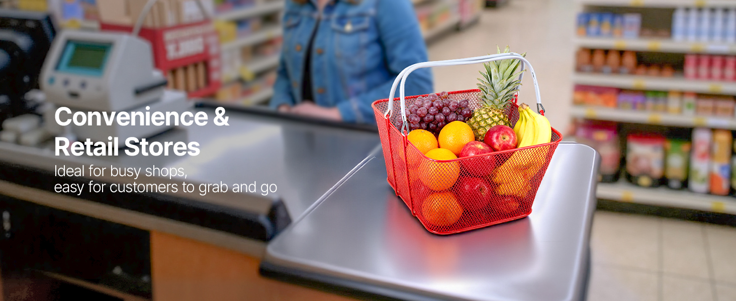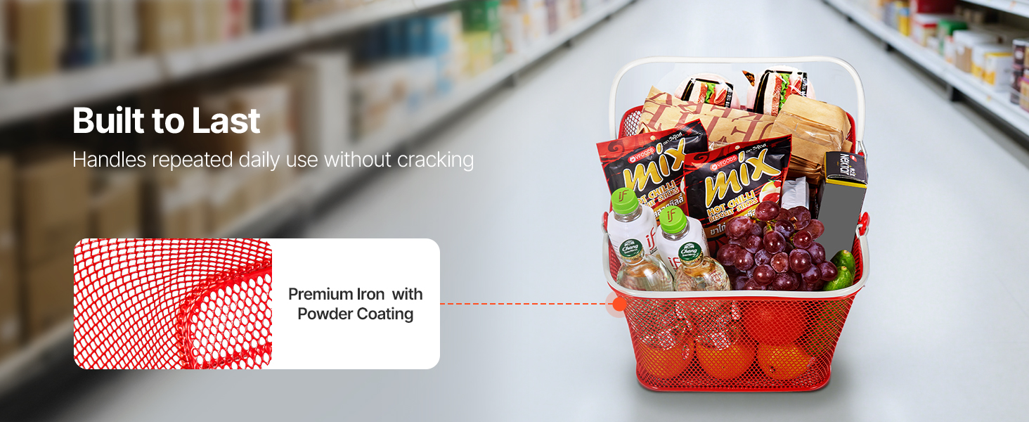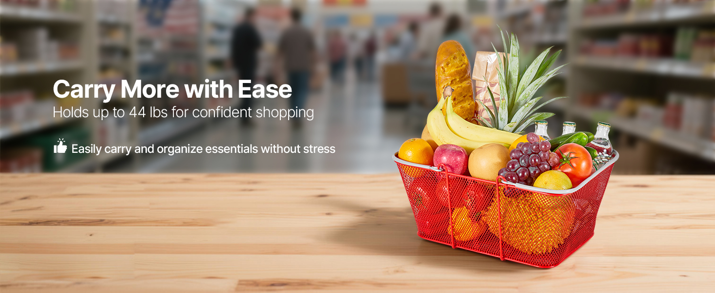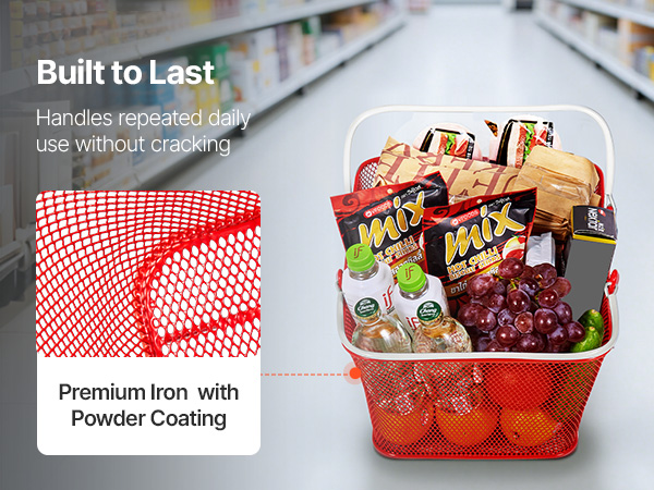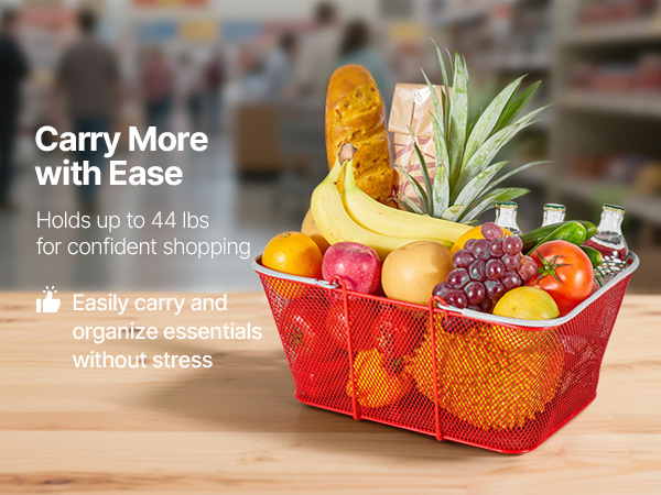 - Rust-Resistant & Heavy-Duty: Built with galvanized iron and reinforced bottom strips, these shopping baskets deliver superior strength, durability, and wear resistance. Each basket holds up to 44 lbs, ideal for retail or home use