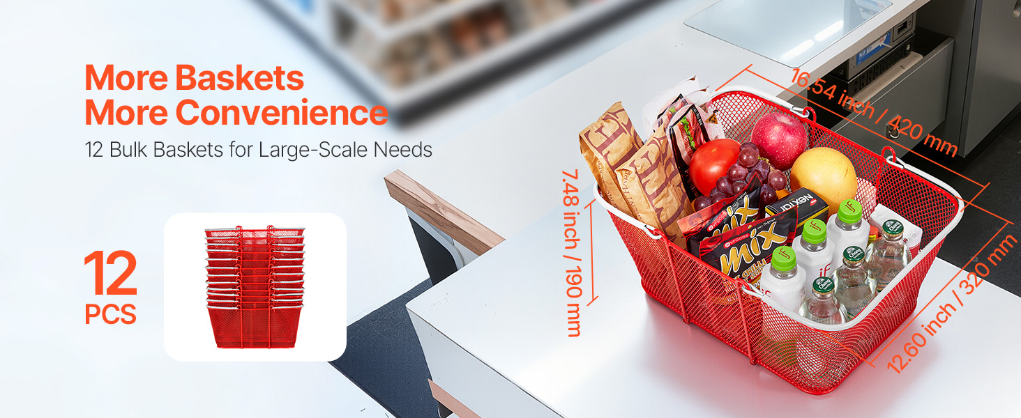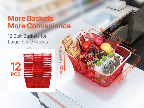 - Ample Quantity: Each shopping basket set includes 12 baskets, providing plenty for multiple uses and replacements. With enough baskets available, you can organize items more efficiently, access them anytime, and ensure a smooth experience for customers