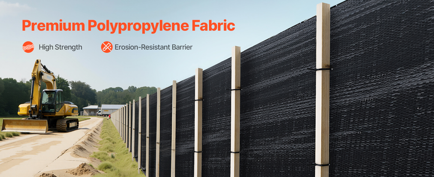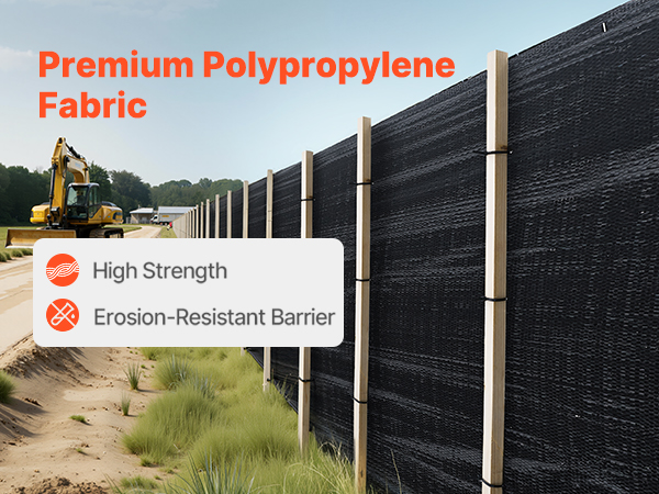 This silt fence fabric is designed to block dust, sand, and sediment, preventing environmental contamination. Made from high-strength polypropylene, it withstands harsh weather and construction site conditions. With a 500FT roll design, it’s ideal for construction sites, roadwork, farms, and more.