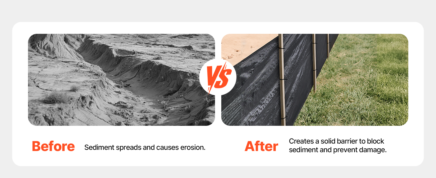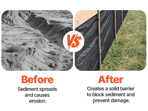 - Wood Stake Required: The erosion control fence requires wooden stakes (not included) for installation. Secure the silt fencing fabric using ties or nails for added stability, preventing displacement in storms or strong winds.
