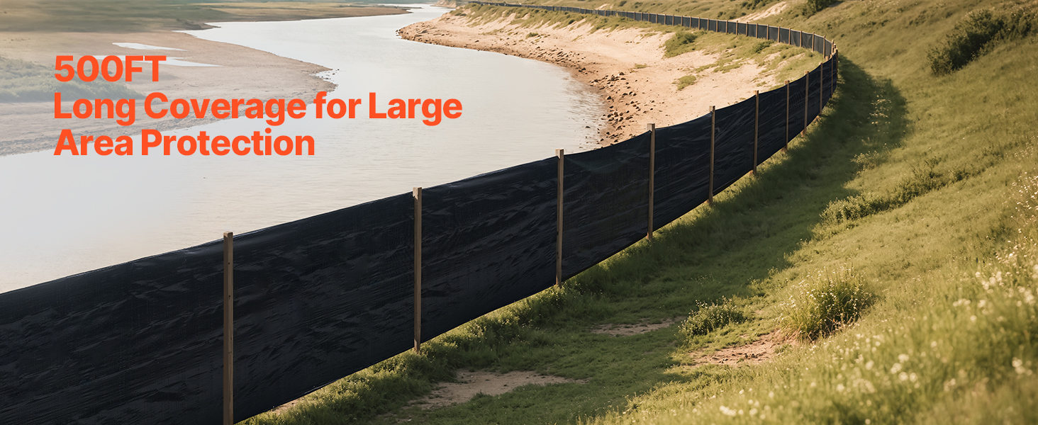 - 500FT Coverage: Our silt fence roll covers a large area with a 500ft length and 3ft height, making it ideal for construction sites to save setup time and improve efficiency.