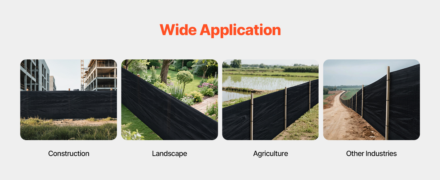 The silt fencing is ideal for construction sites, roadwork, garden barriers, farm protection, and more, for sediment control and fencing in various environments.