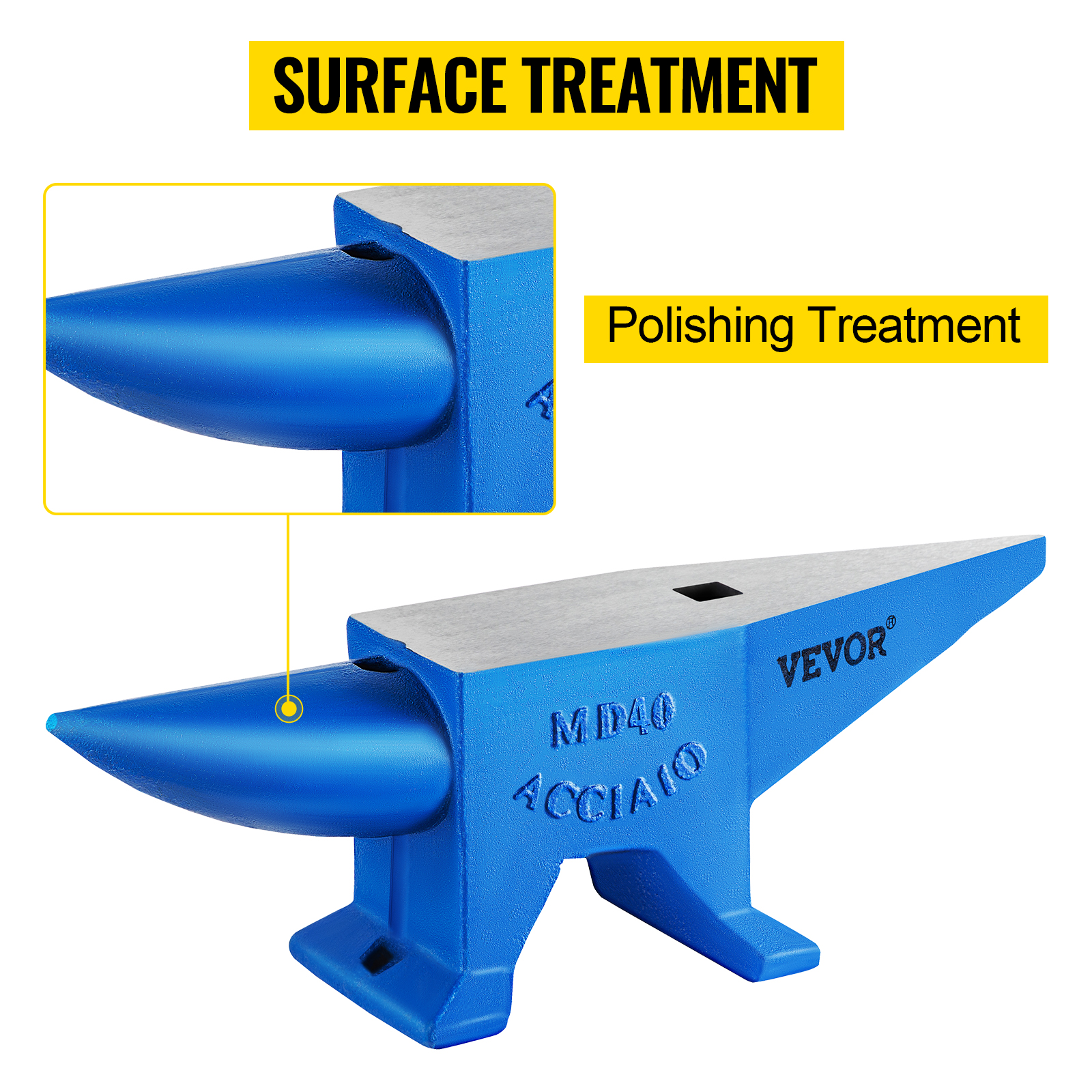 - Polishing Treatment: With fully polished surface area, the blacksmith anvil is corrosion-proof and services long-lasting use through quenching treatment. And the spray coating effectively relieves the oxidation reaction.