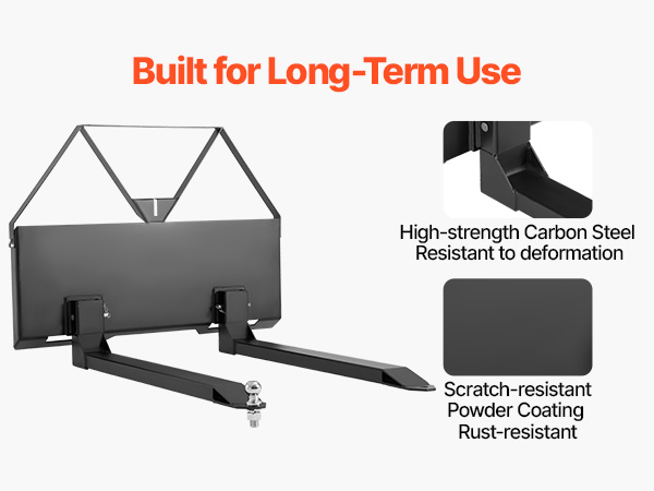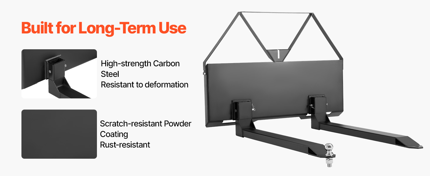 - Reliable, Durable Steel Construction: Built to last! Our heavy-duty skid steer pallet forks and mounting plate are made from high-strength carbon steel, coated to resist corrosion and rust. Enjoy years of reliable, tough performance