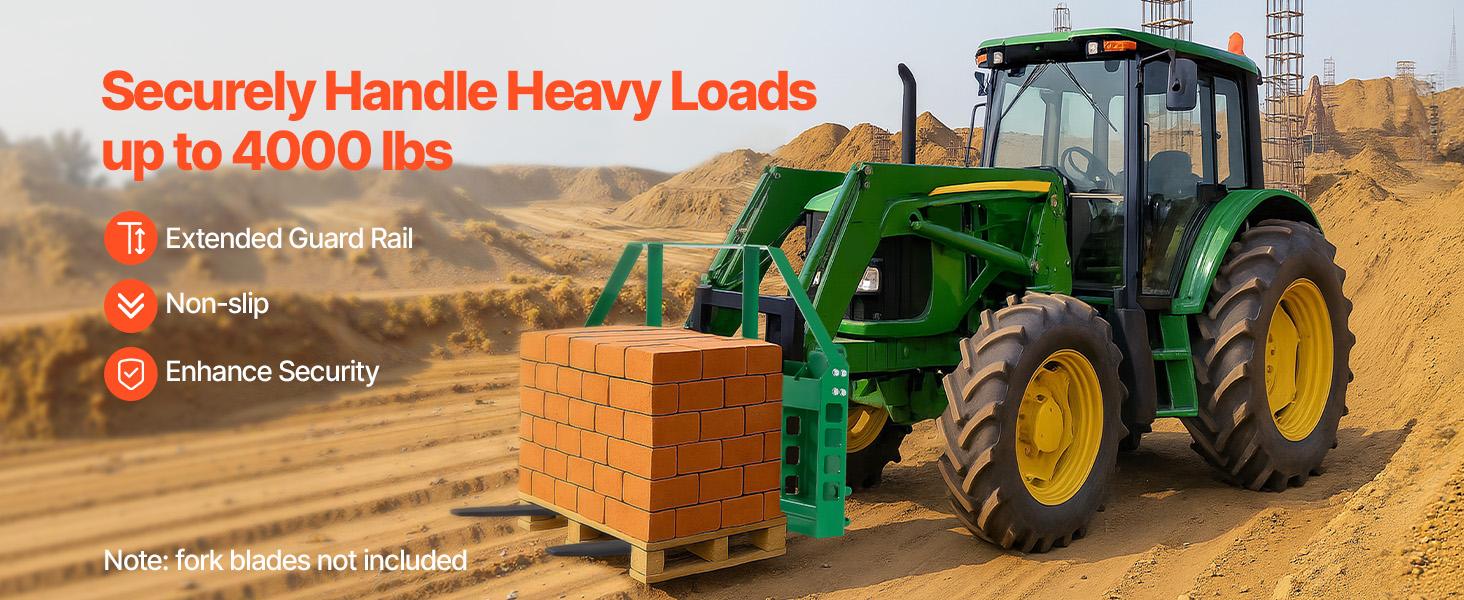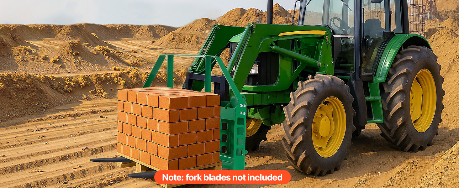 This 4000 lbs-rated pallet forks frame is designed for the John Deere tractor series. Ideal for moving hay bales, building materials, and more on farms, gardens, or construction sites. Efficient and reliable for heavy-duty tasks.
