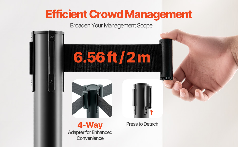 - Wide Coverage: The crowd control barriers feature four 6.56 ft / 2 m retractable belts, providing a flexible and convenient solution for space management. Easily adjustable to accommodate diverse environments and events.