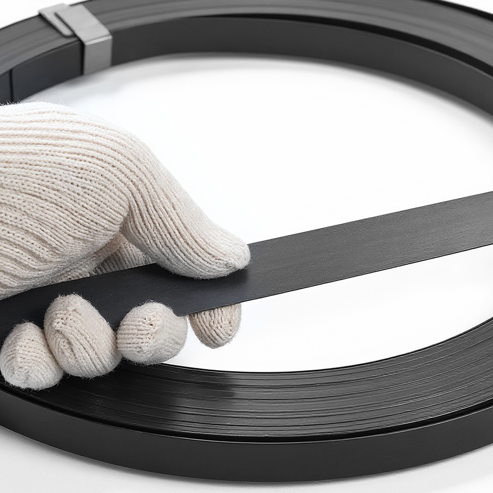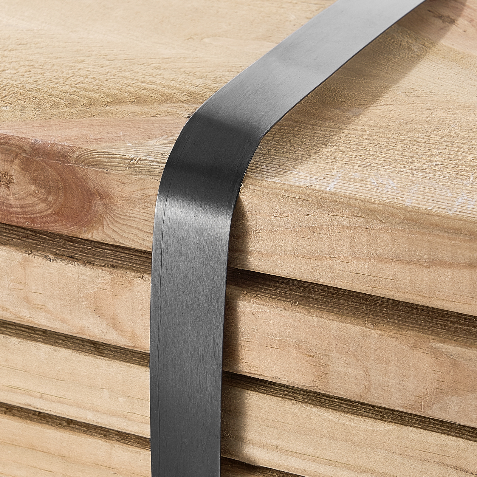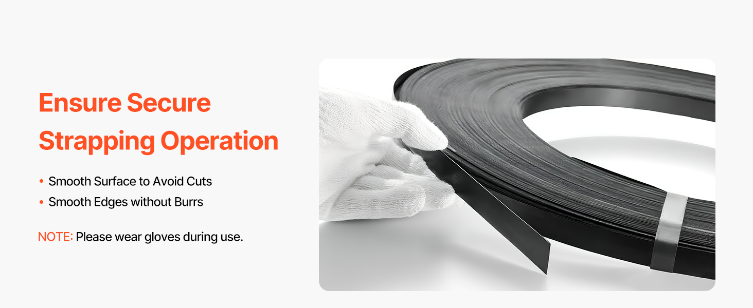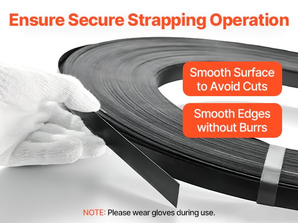 High-strength steel strapping with a smooth surface and secure edges to reduce hand injuries and improve strapping security (glove use recommended).