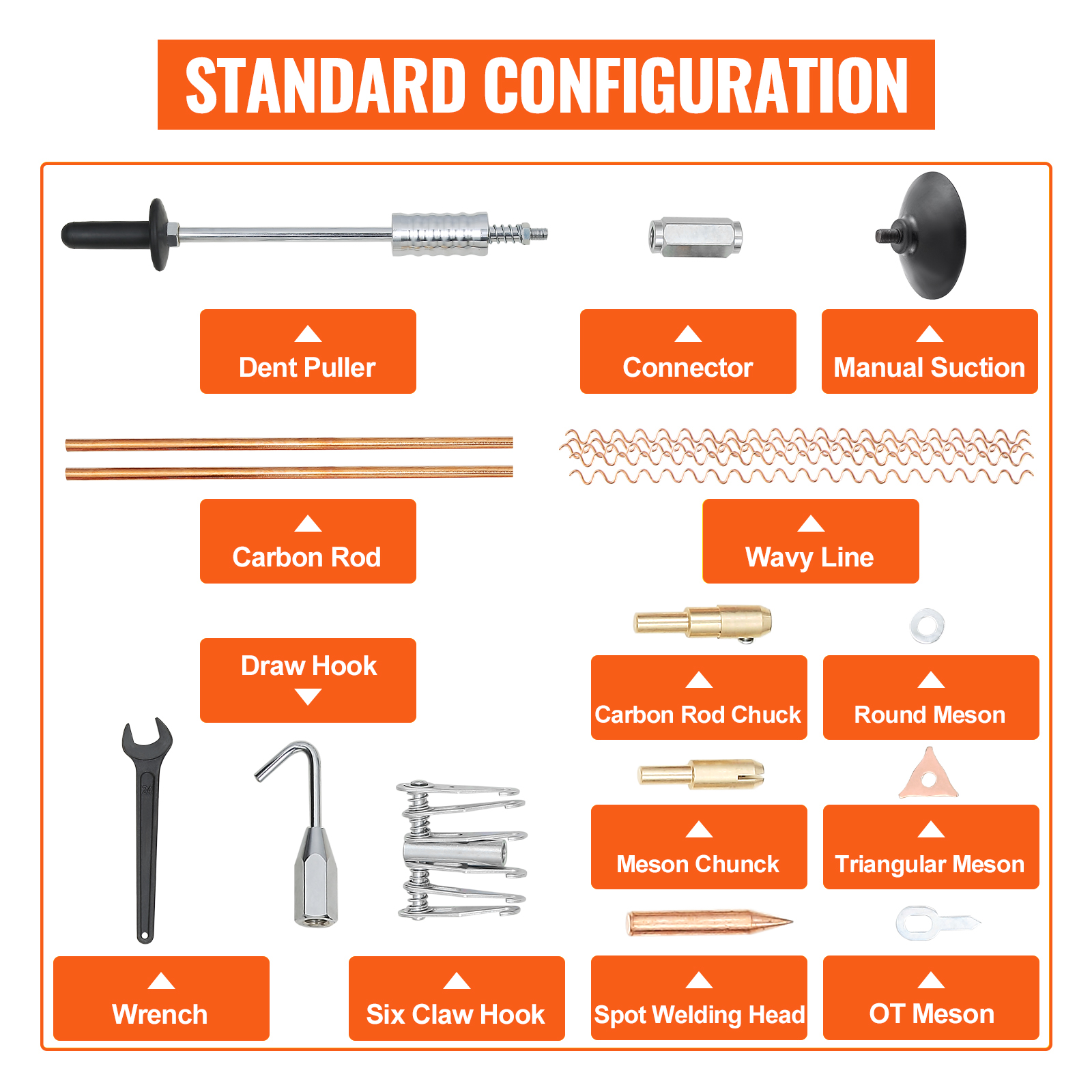 We provide various accessories to ensure that our spot weld dent puller can repair the dents you want. Also, a compact toolbox for solving your storage problem.