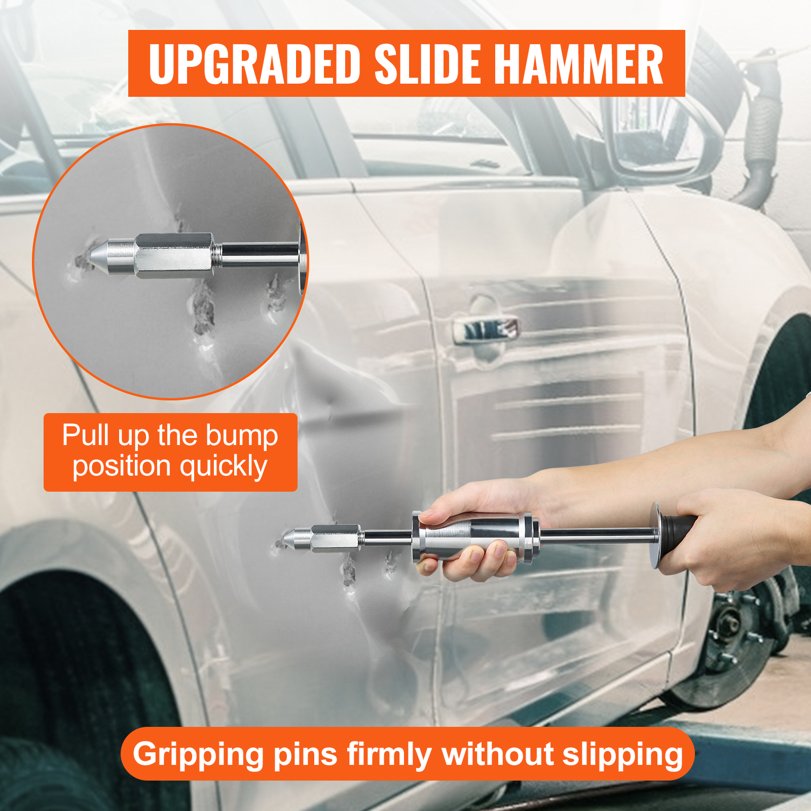 - Heavy Duty Slide Hammer: The heavy-duty spot welder stud with quick-release chuck can hold the pin firmly without sliding, and its handle is made of vinyl, which is non-slip and can be held firmly. Also, the weight of the cast iron slide contributes to comfortable grip.