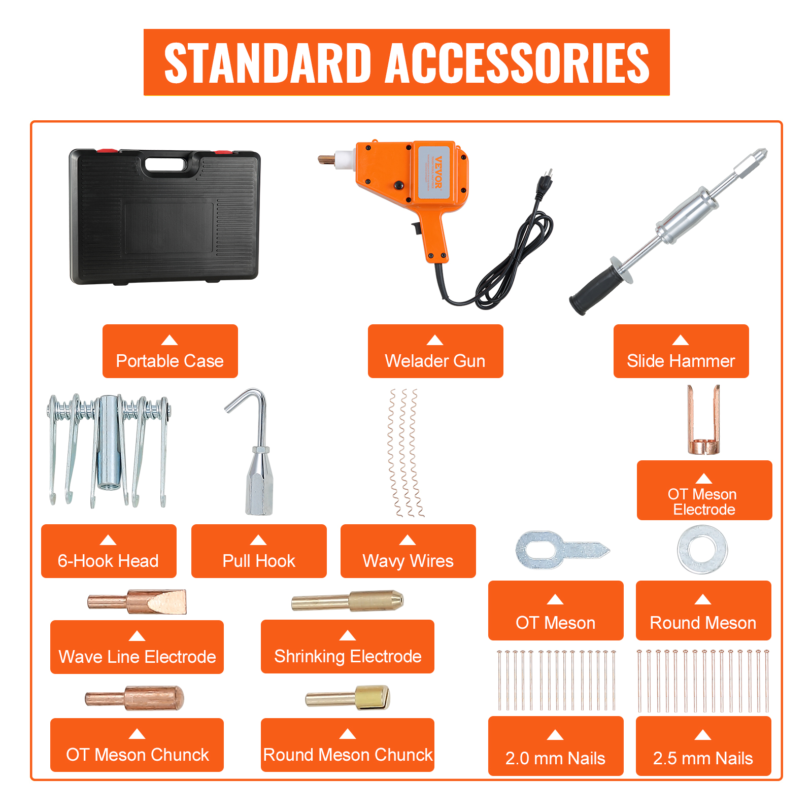 - Useful Accessories Included: This stud gun dent puller kit has complete accessories, which can solve all the common dent problems of vehicles. It is small in size and can be used flexibly in any position. The tool box makes the welding accessories neat and portable.