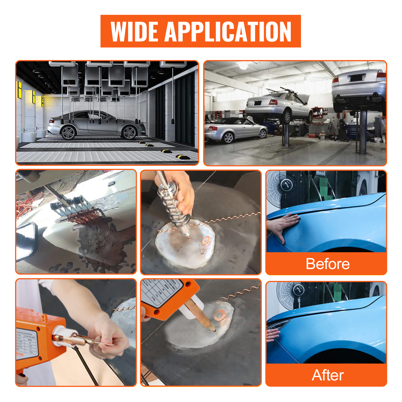No matter what type of vehicle it is, cars, trucks, vans, our stud gun dent puller kit can target car collision damage. Such as repair metal elastic deformation, plastic deformation, direct damage, and partial indirect damage. It is also suitable for other metal deformation repairs.