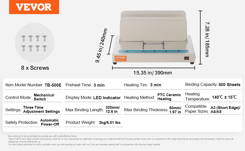 - Large Binding Capacity: Meet your office needs! Bind up to 500 sheets with a thickness of up to 50mm at once. This thermal book binder is compatible with A3, A4, and A5 paper sizes, fulfilling various document binding requirements and enhancing work efficiency.