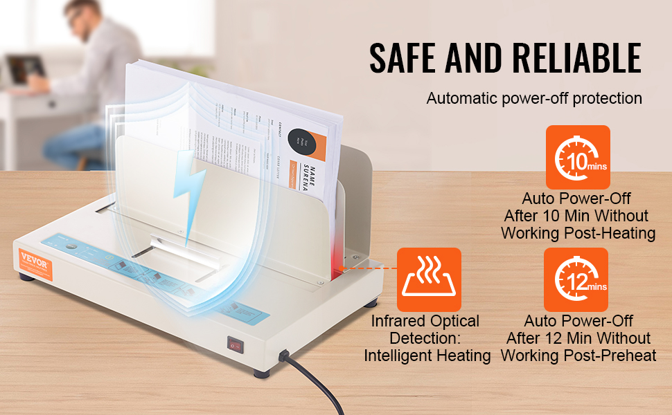 - Safe and Efficient: The auto power-off design makes binding safer. Our thermal binder shuts off automatically after 10 minutes of inactivity and 12 minutes post-preheat without operation, giving you peace of mind. Dual buzzers and infrared photoelectric detection ensure reliability working.