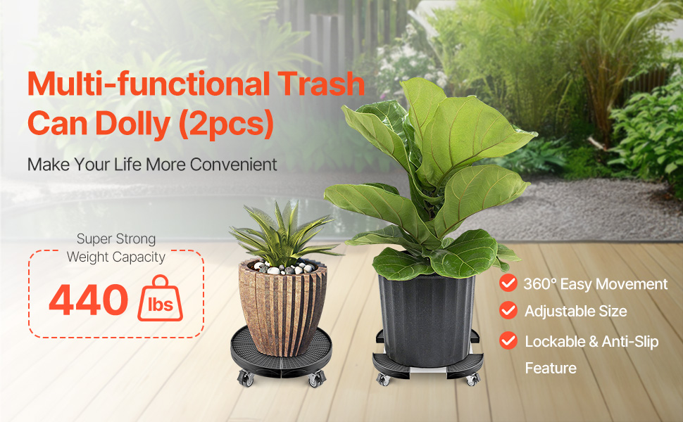 - Versatile Application: Ideal for indoor use, moving whiskey barrels, trash bins, or plants, and ideal for outdoor use to move garden umbrellas and Christmas trees. Whether on smooth indoor floors or rough outdoor surfaces, this trash can dolly with wheels ensures smooth mobility and meets various usage needs.