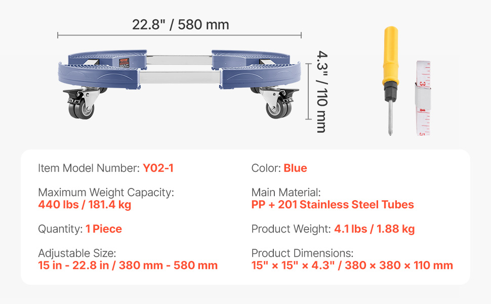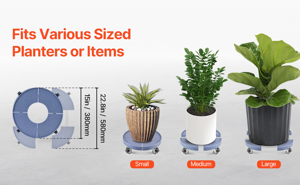 Made from scratch-resistant PP panel and sturdy frame, the trash can dolly effortlessly transports large potted plants. Equipped with 4 lockable swivel casters for smooth mobility and no damage to floor. Adjustable from 15″ to 22.8″ with 6 height settings. The anti-shock base locks avoids tipping.