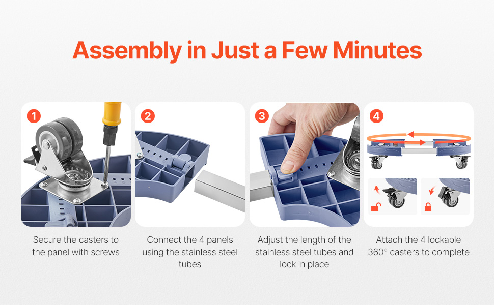 - Dual Locking Function: The trash can roller base features 4 locking swivel casters to prevent sliding, and a shockproof secuerity lock at the bottom to secure the size, ensuring smooth and stable movement. No need to worry about items falling or being damaged during transport.