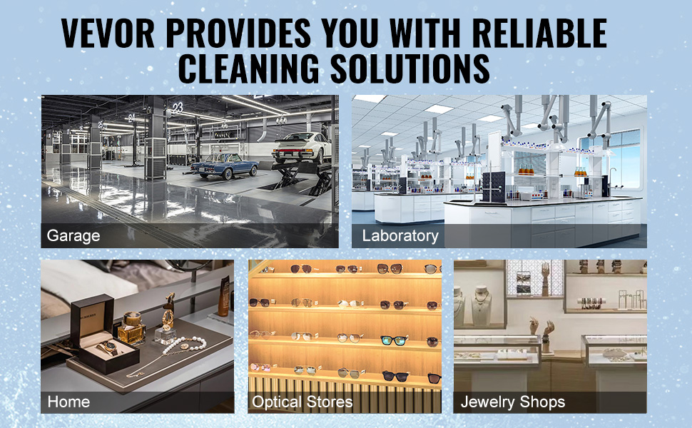 - Versatile Applications: The VEVOR ultrasonic cleaner machine holds multiple certifications, ensuring reliability and suitability for a wide range of applications, including laboratories, carburetors, circuit boards, dental equipment, jewelry, eyeglasses, watches, and cutlery.