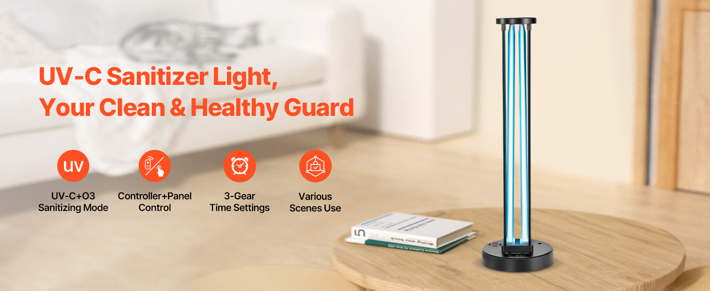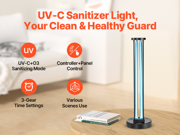 • UV-C + Ozone Technology for a Fresher Space: This UV light sanitizer reduces airborne impurities and odors. Ensure the room is clear of people, pets, and plants during operation to avoid harm to skin or eyes. After use, ventilate the area until the air is fresh.