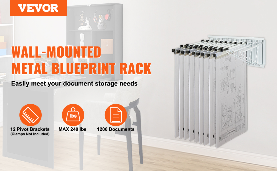 - Efficient Storage Solution: With 12 pivot brackets, this wall mount blueprint storage rack holds up to 240 lbs or 1200 sheets of documents. It offers ample organized storage for blueprints, construction plans, and various documents, maximizing efficiency with easy access.