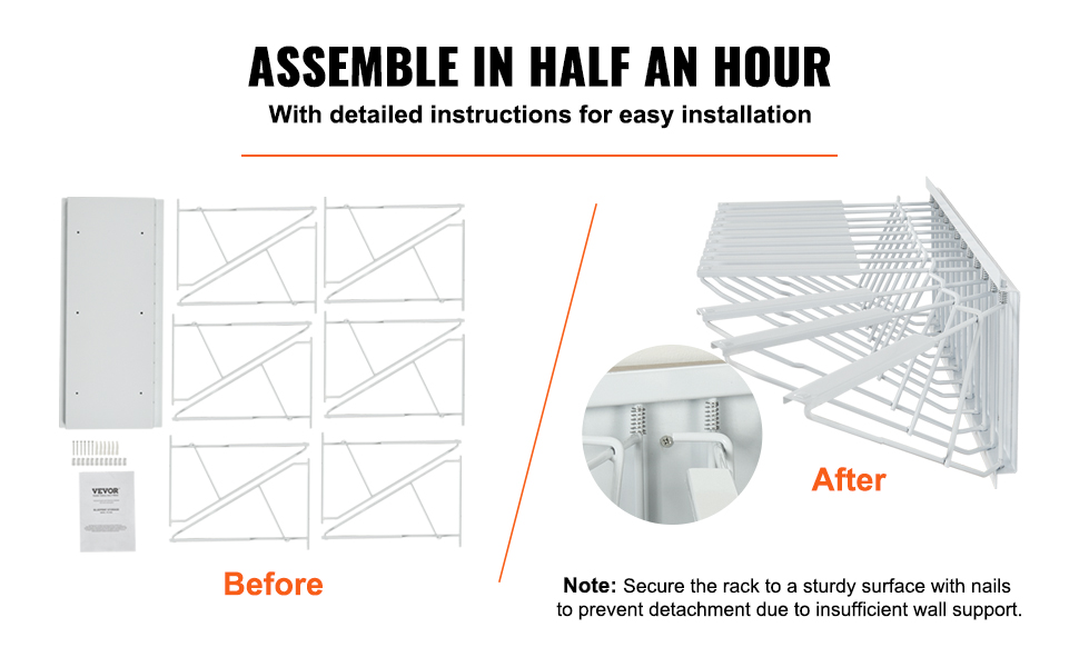 - Easy Assembly: We provide installation instructions and all necessary hardware, requiring no additional tools or complex steps. You can easily assemble and mount it to a wall or sturdy surface within half an hour.