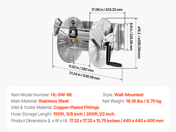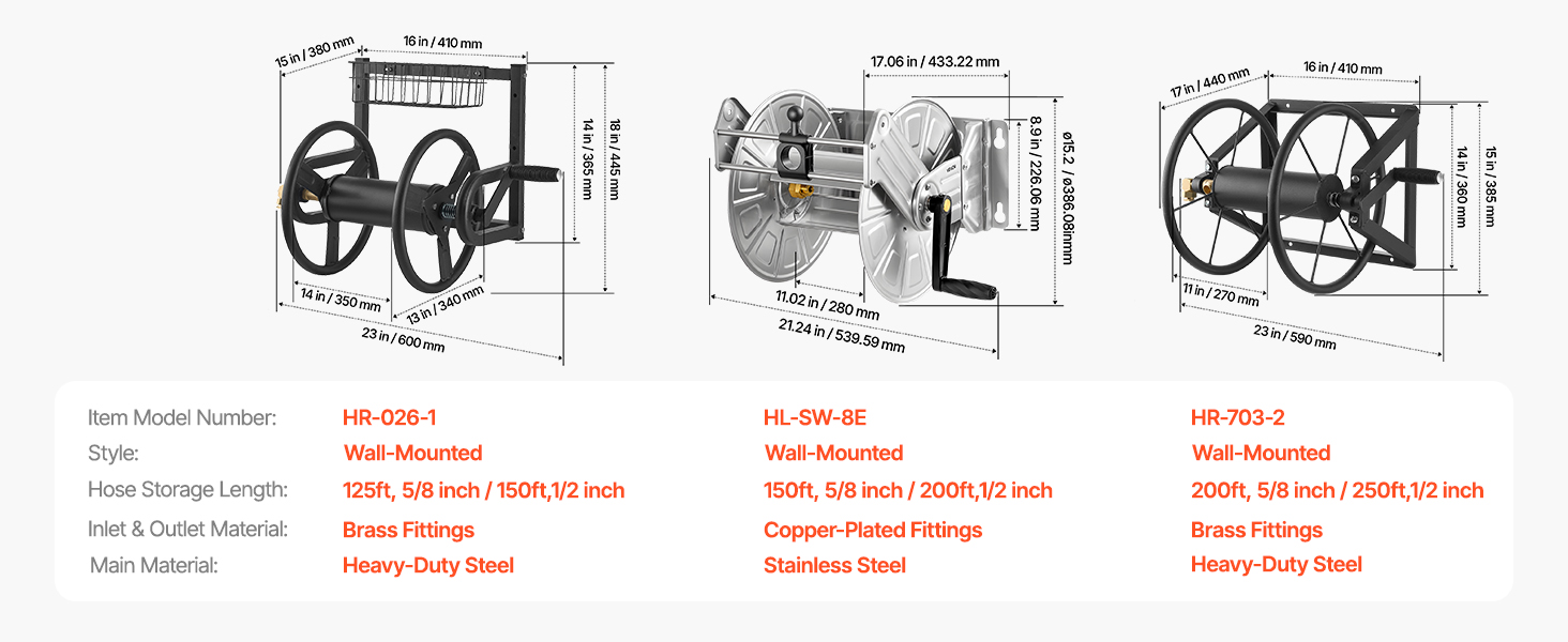 - Durable & Long-Lasting: Made from high-strength 304 stainless steel, the water hose reel is corrosion and rust resistant to withstand various weather conditions. Whether exposed to the sun, rain, or cold winter, this metal hose reel ensures stability and durability.