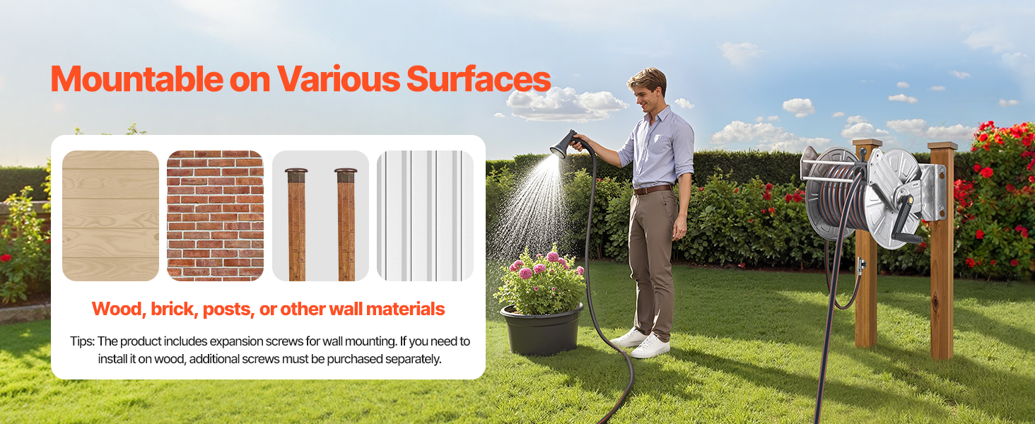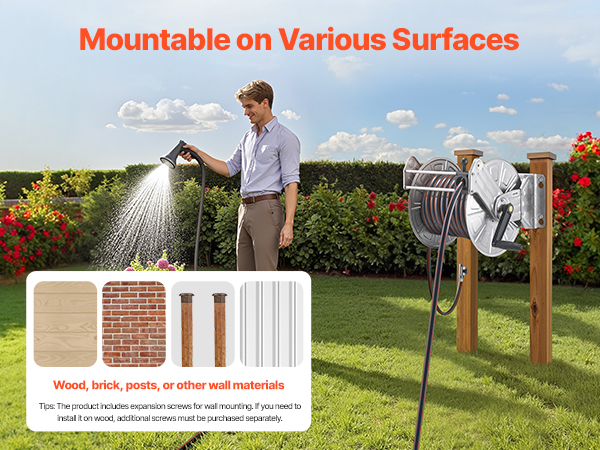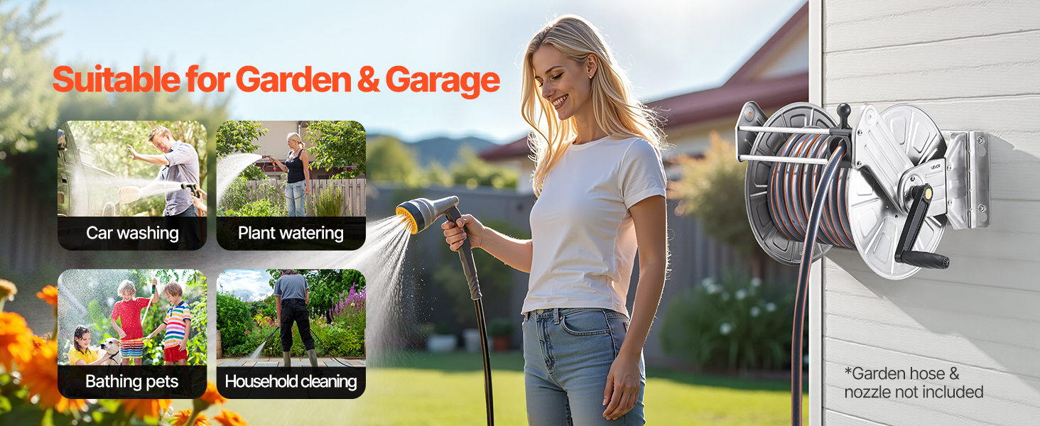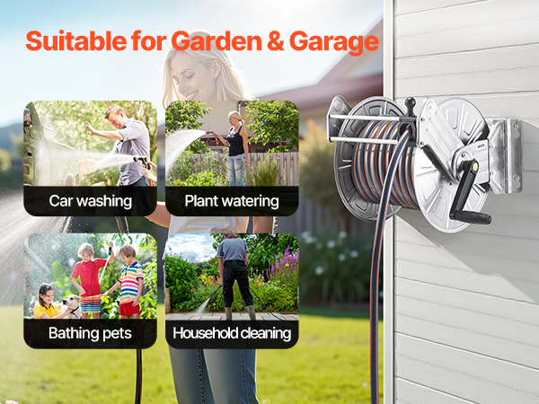 - Multiple Applications: Designed for backyard, garden, patio, and other outdoor environments, this hose reel ensures versatile watering applications. This reliable power washer hose reel is ideal for watering plants, washing your car, or cleaning outdoor surfaces