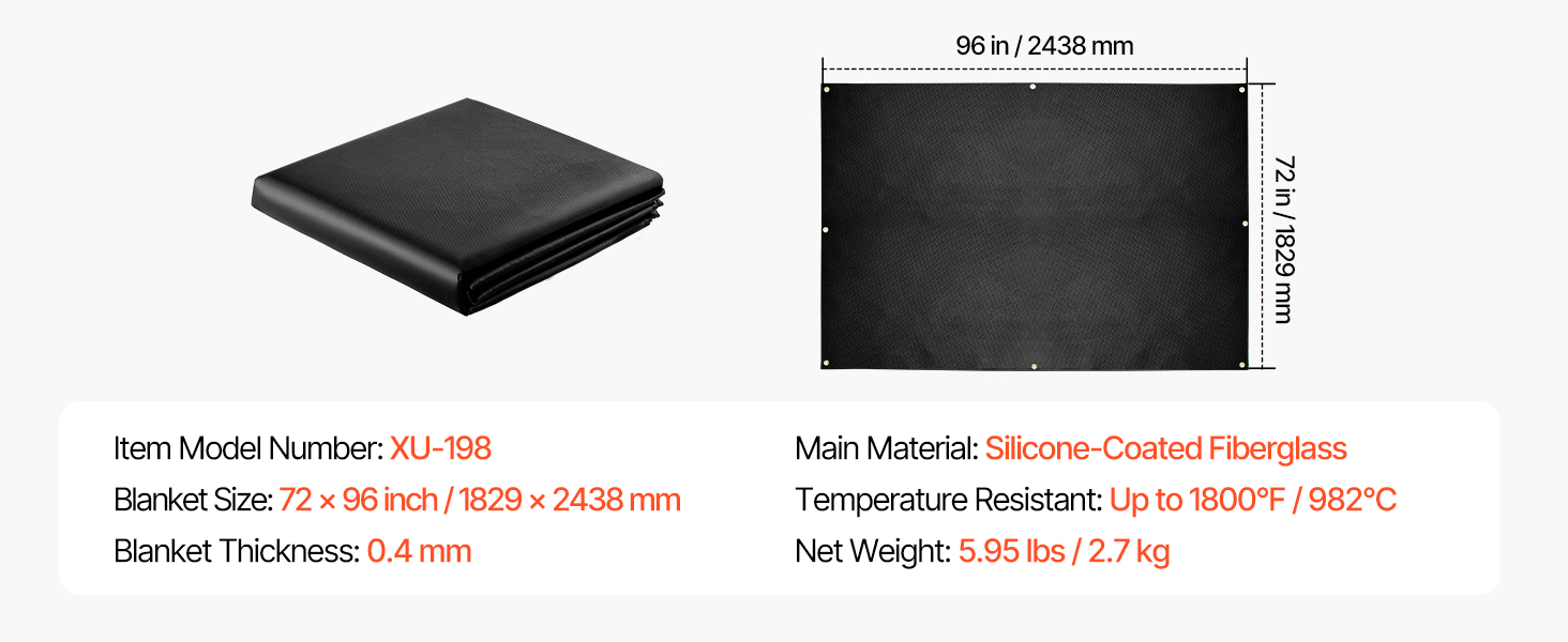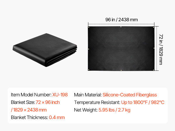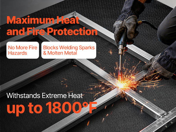 • High Temperature Resistant: VEVOR 6 FT x 8 FT welding blanket withstands high temperatures up to 1800°F (982℃), delivering excellent heat and flame resistance to protect against sparks, flames, molten metal and intense heat