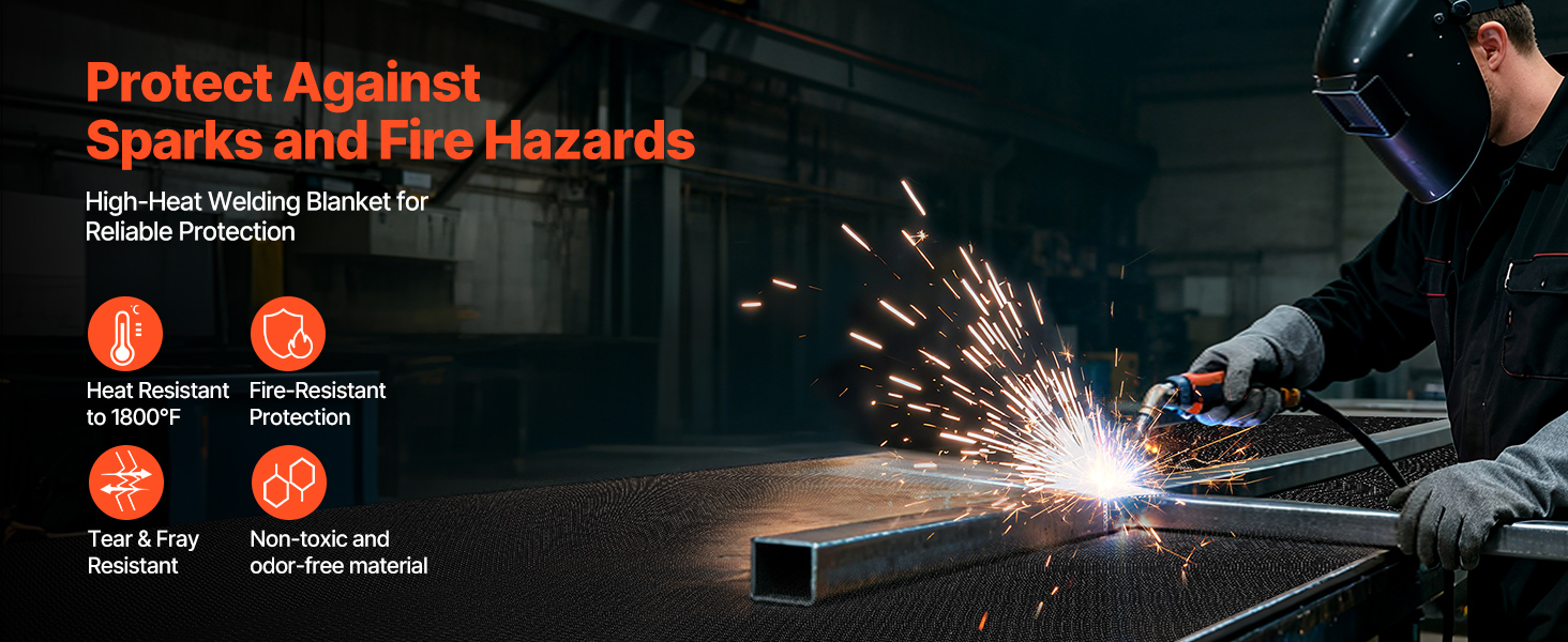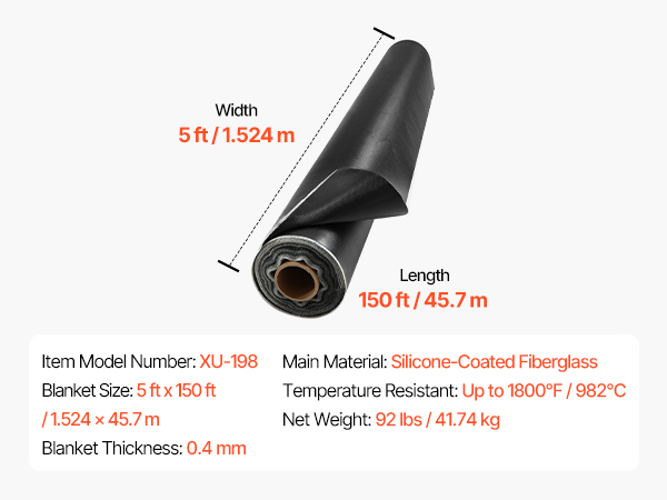 • High Temperature Resistant: VEVOR 5 x 150 FT welding blanket roll withstands high temperatures up to 1800°F (982℃), delivering excellent heat and flame resistance to protect against sparks, flames, molten metal and intense heat