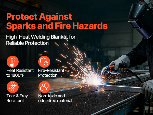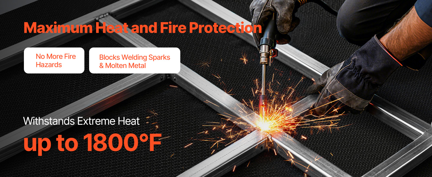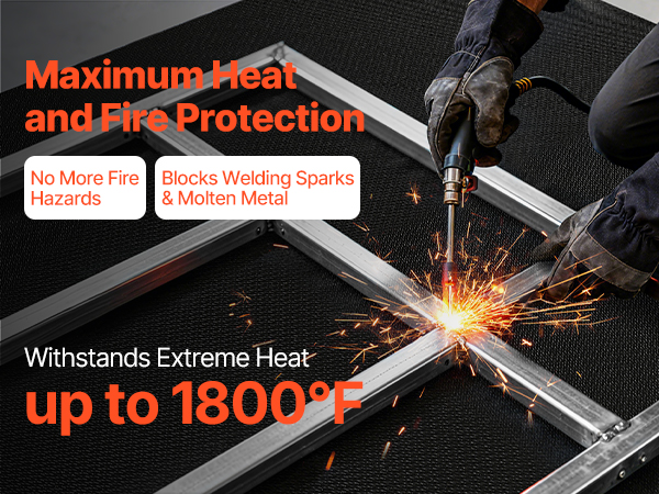 Extreme heat protection up to 1800°F, effectively blocking sparks and molten metal to eliminate fire hazards and provide maximum safety for your welding workspace.